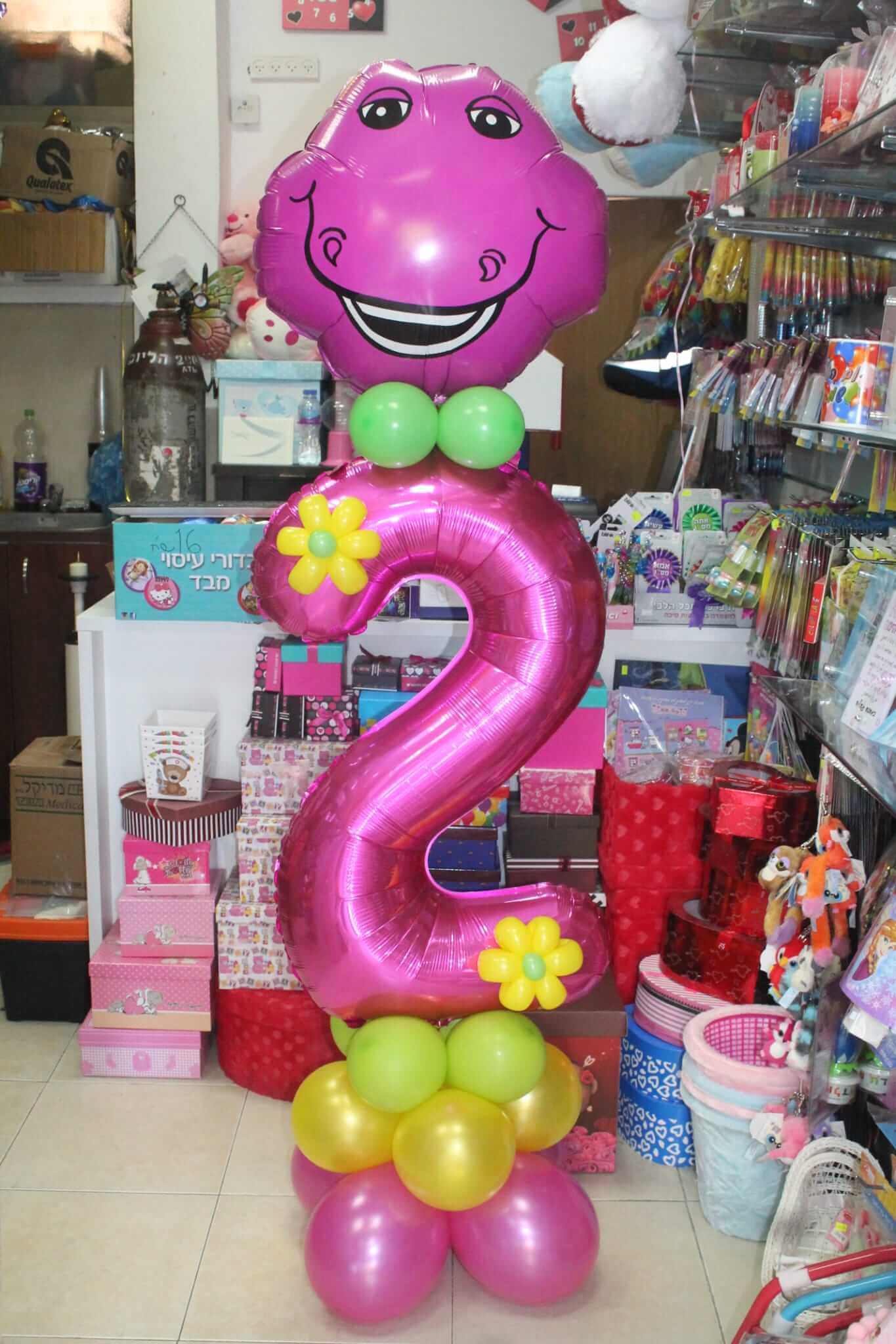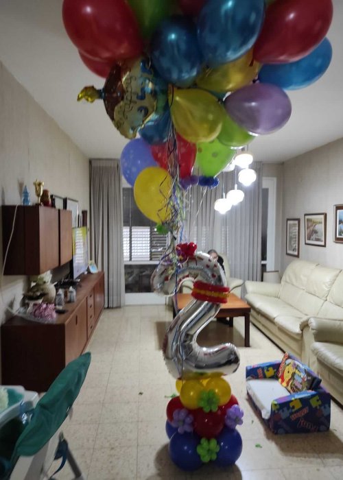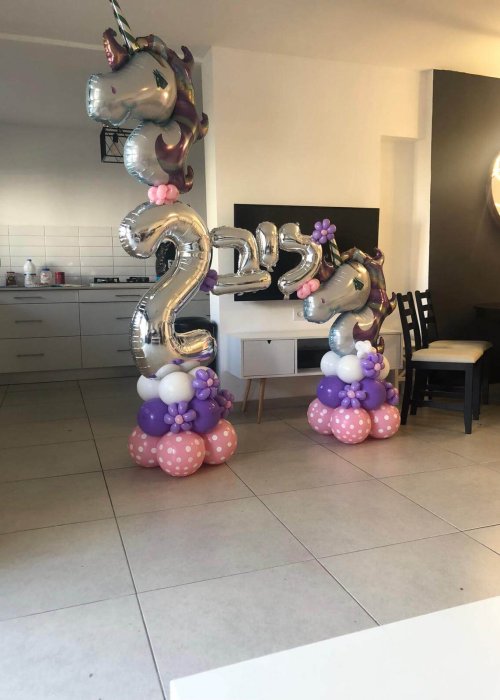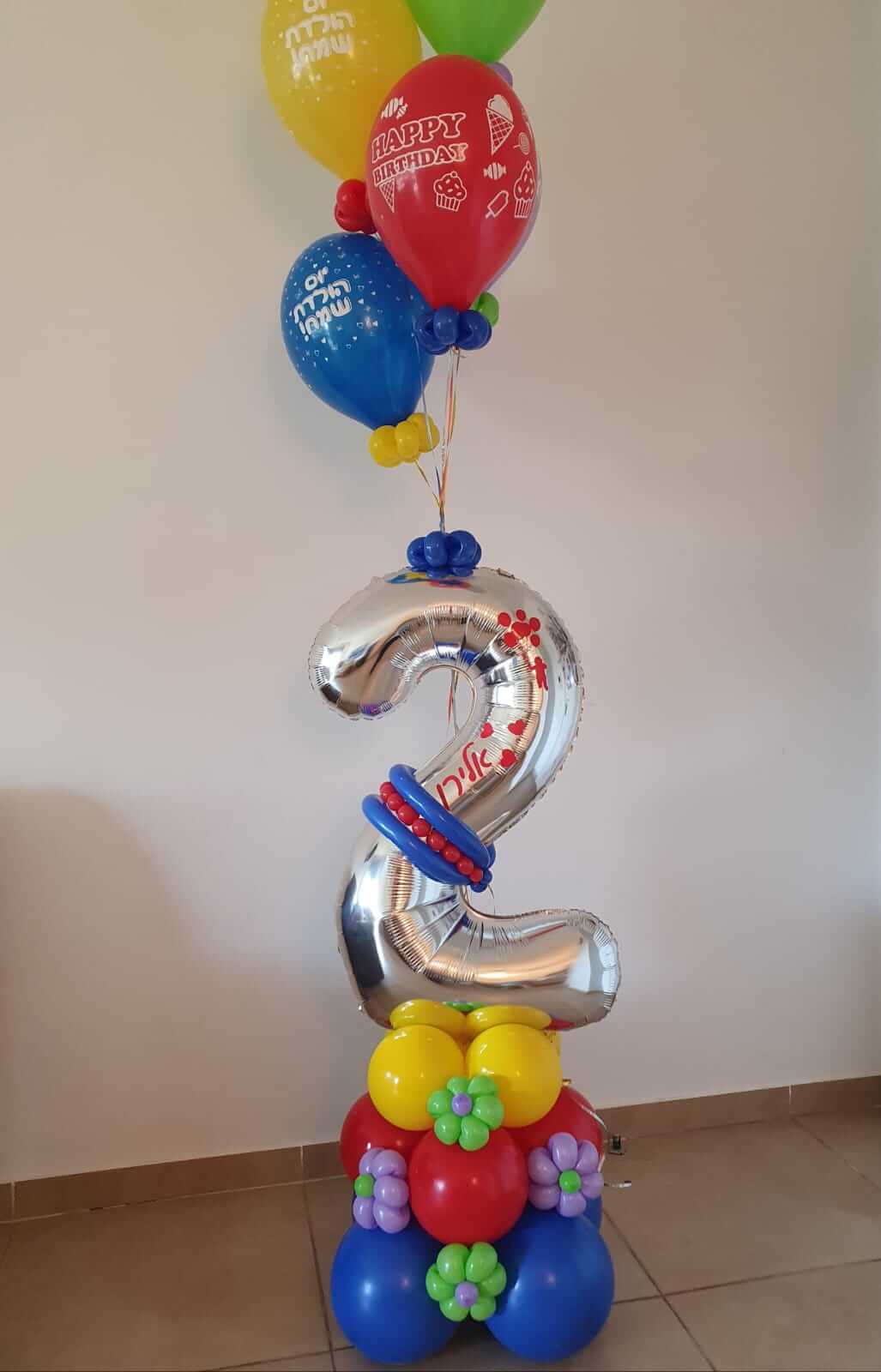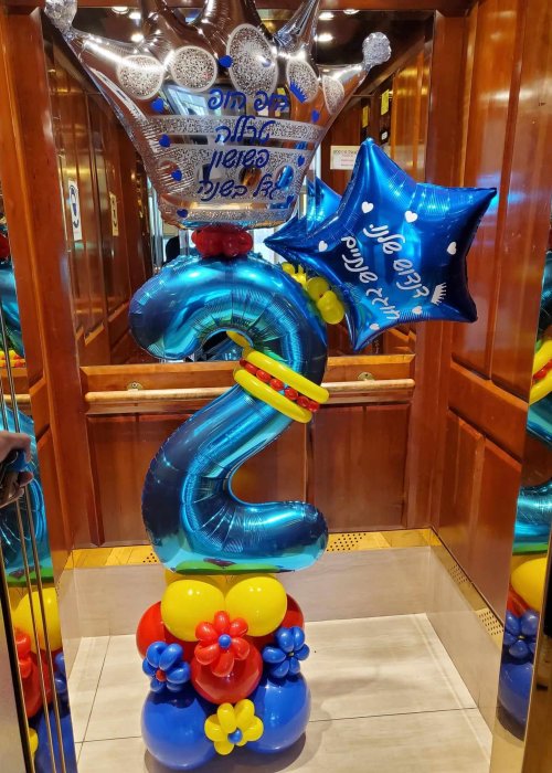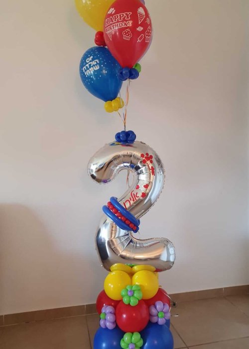וכאן בבלונים זה הכל אנו שמחים להציע מגוון של אפשרויות לעיצובי בלונים לגיל שנתיים. ניתן להזמין בלוני מספרים או לחילופין שנעצב לכם מספר אחד ענק משורה של בלונים.