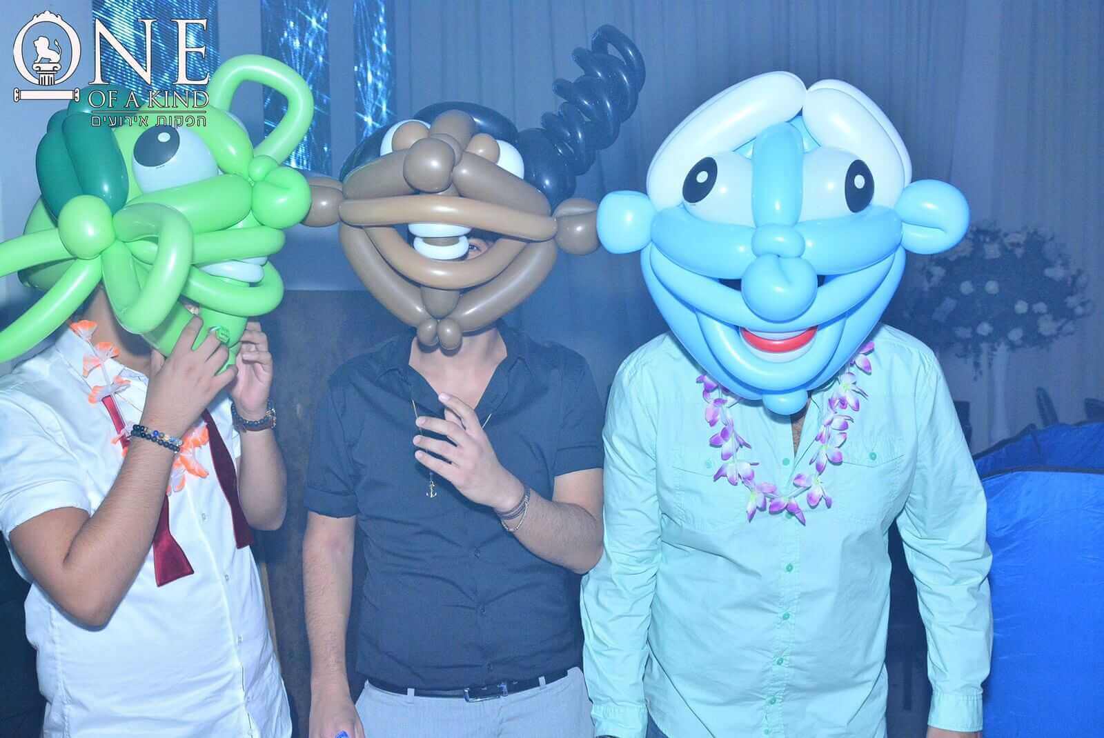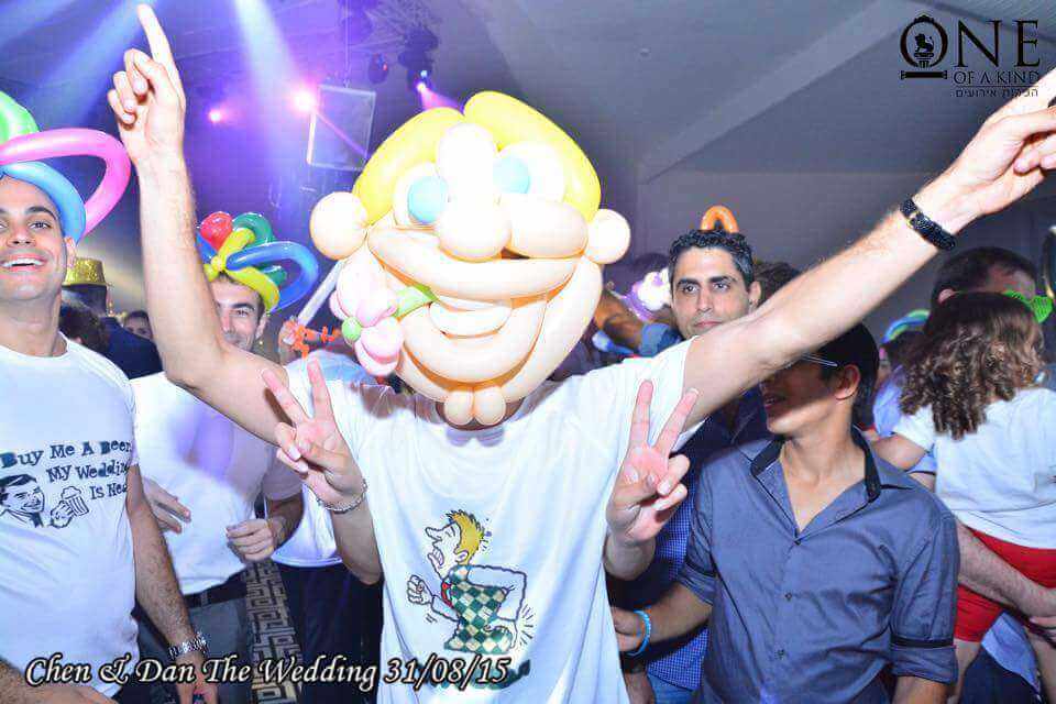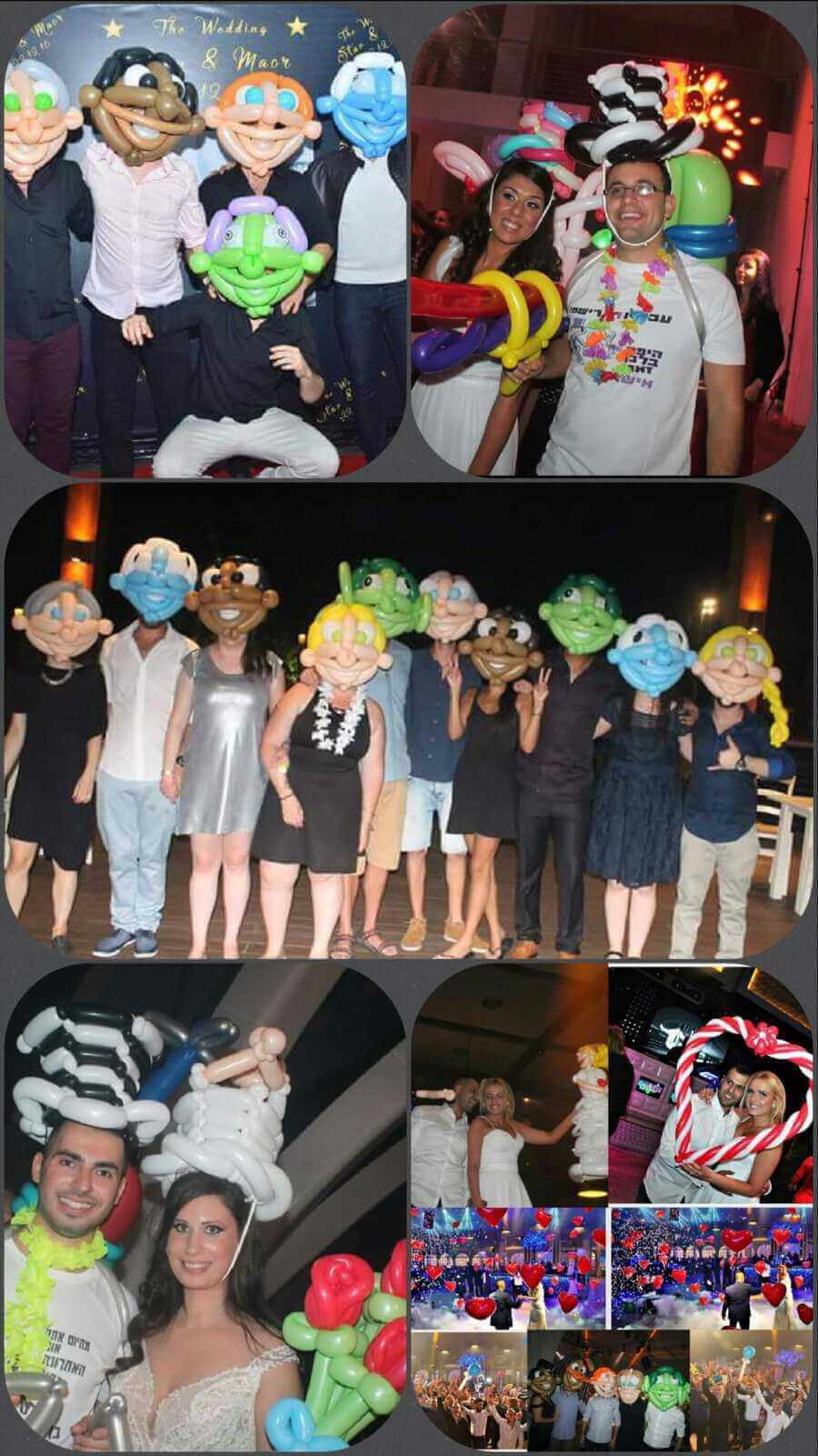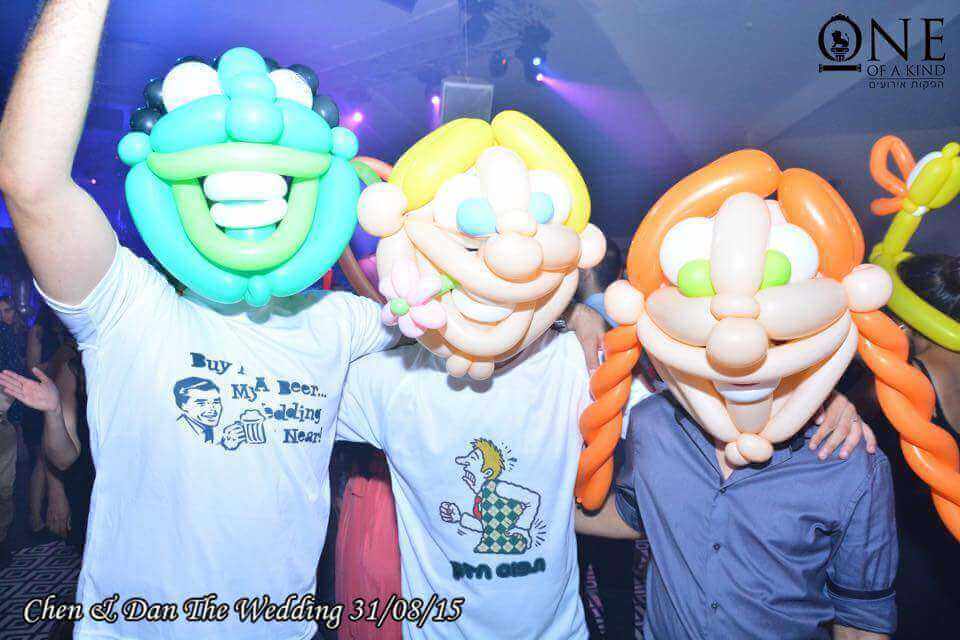 מתן הדגש בחתונות הוא על כובעי בלונים ובלוני צורות שניתן ללבוש על הגוף, בכדי להפוך את רחבת הריקודים בחתונה לצבעונית ושמחה במיוחד. מדובר באמנות מהפנטת, שמלהיבה ילדים ומבוגרים כאחד. אנחנו נחזיר את כל אחד ואחד מכם לילדות בשניות.