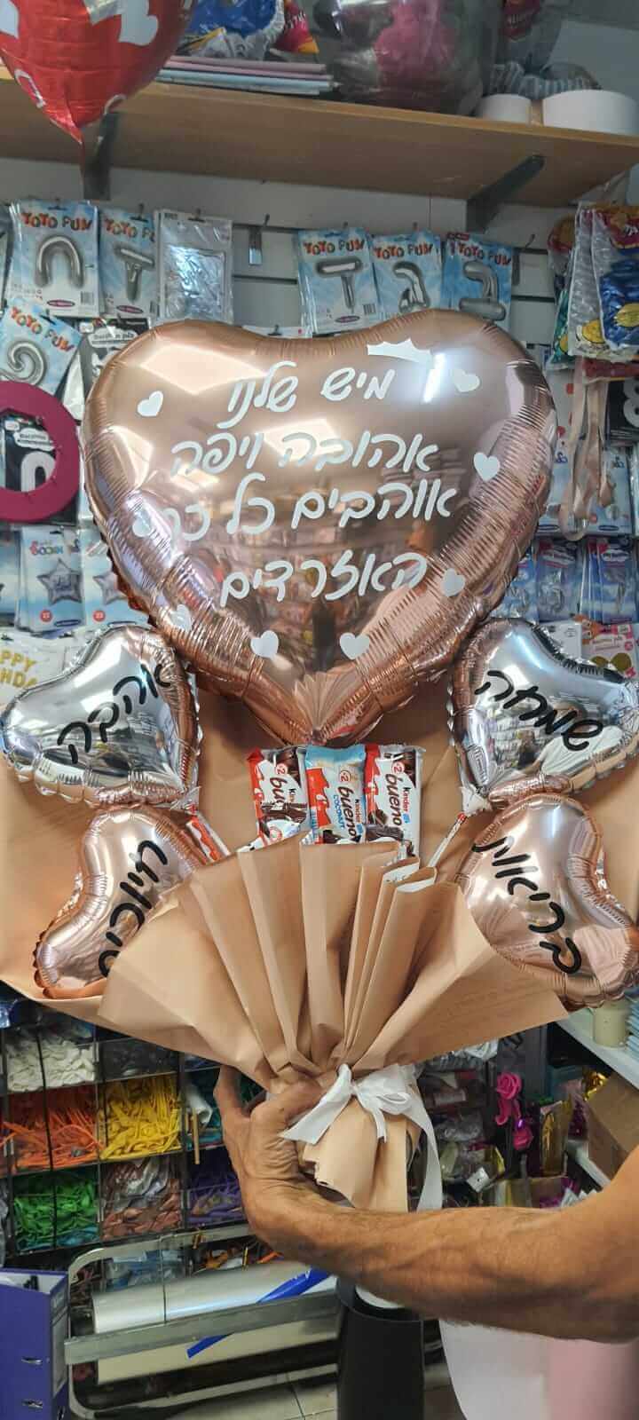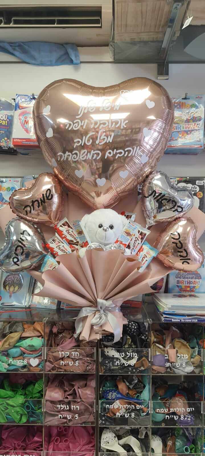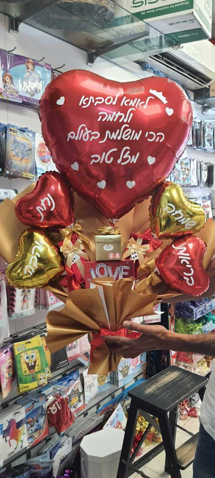 ניתן להזמין בלונים בצורת לב ביחידים או בזר מעוצב.