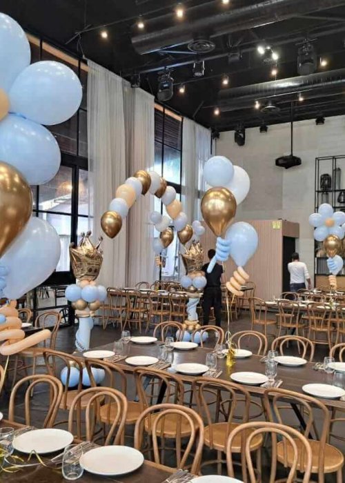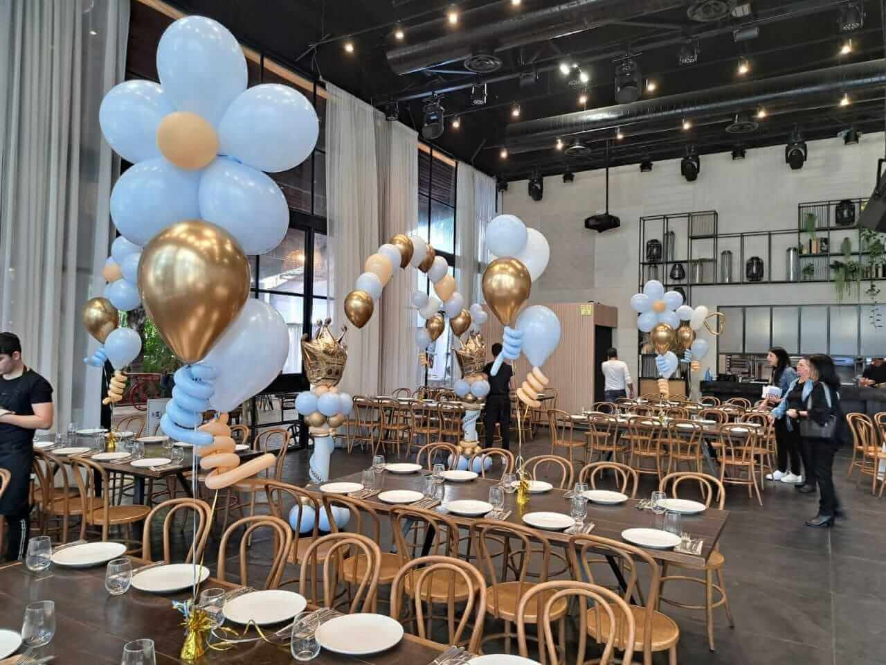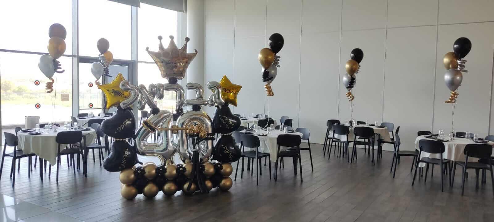 עיצובי בלונים במרכז השולחן משמשים כנקודות מוקד שמושכות את העין, הם מעוררים רגש והתרגשות, והופכים את האירוע לנוצץ במיוחד.