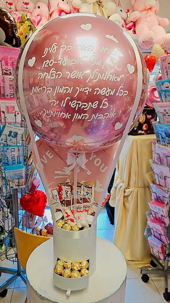 בלון כדור פורח ענקי רומנטי עם שוקולדים