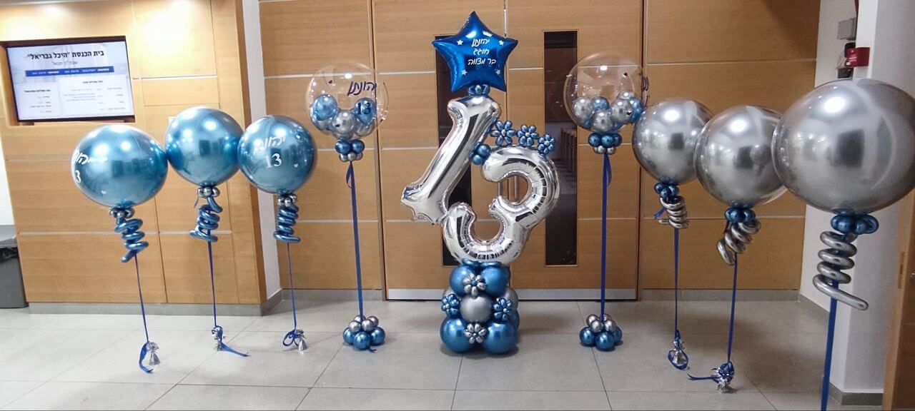 בלונים זה הכל מעצבים לכם אירוע ומעניקים לכם עיצוב בלונים מקצועי לאירוע בר המצווה של בנכם, בעיצובים מגניבים לבחירתכם, שלל עיצובים וכן אפשרות ליצירת קיר בלונים לבר מצווה עם בלונים זה הכל! צרו קשר להצעת מחיר עוד היום !