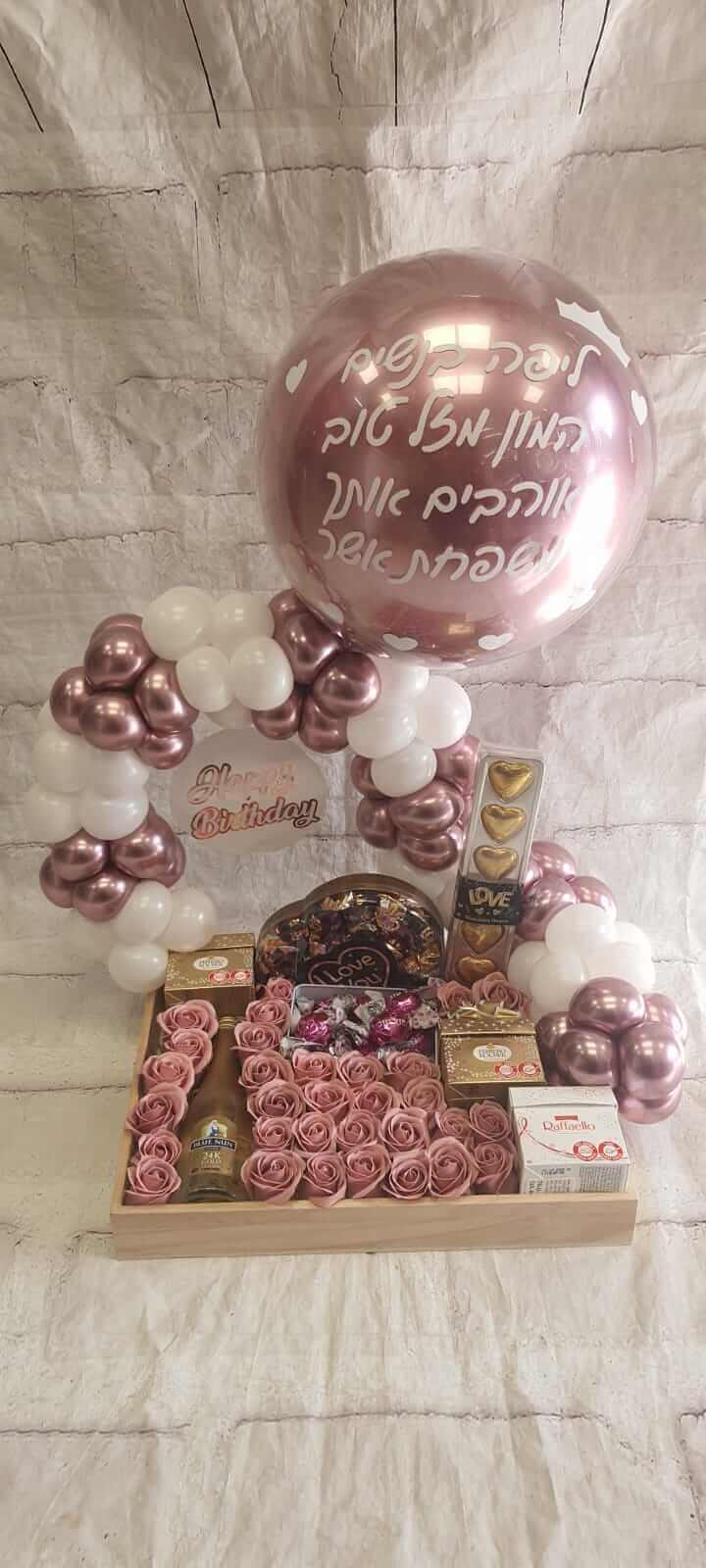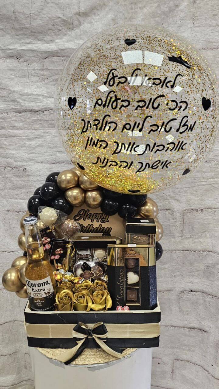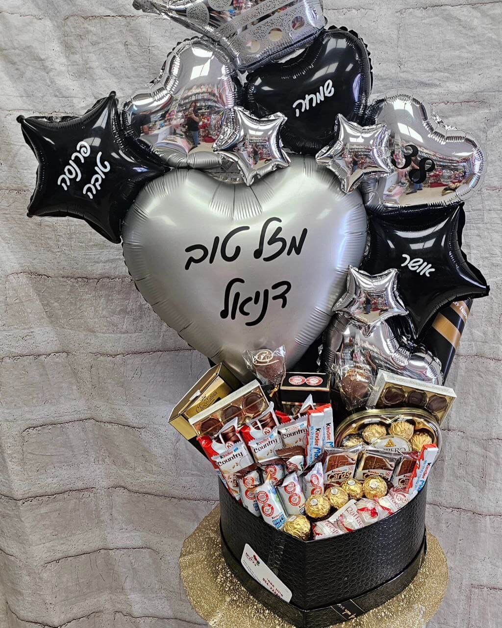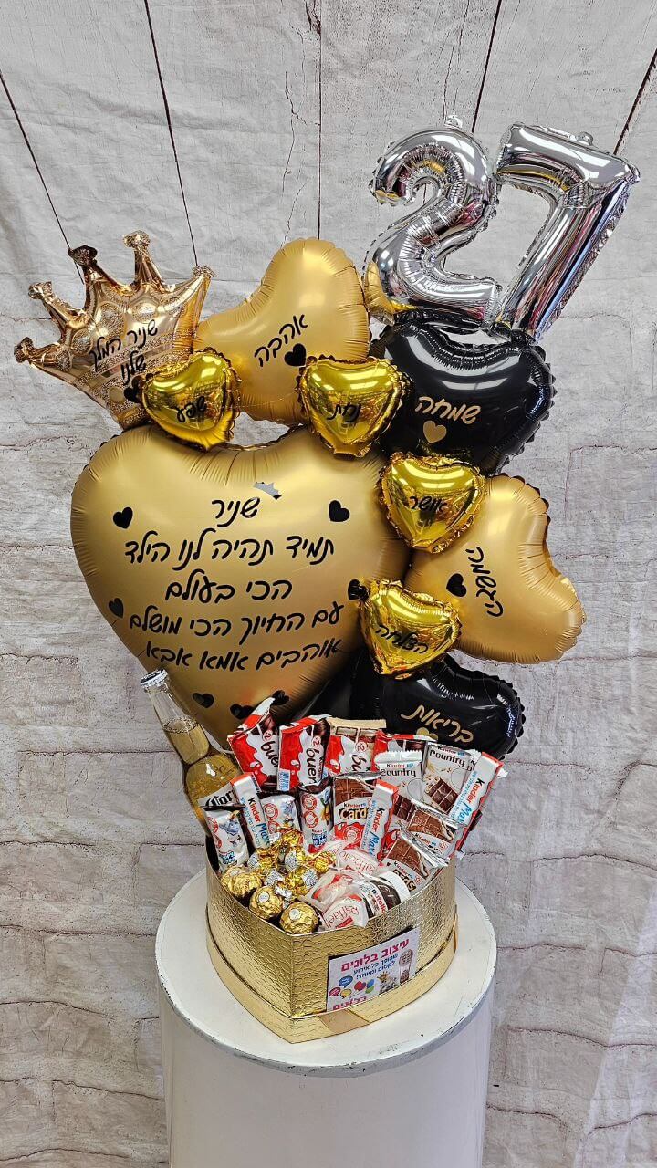 בבלונים זה הכל נשמח להגיע עם משלוח מהיר עד אליכם. משלוח שיכלול שפע של דברי מתיקה נהדרים וממכרים, והכל במארז יוקרתי יפהפה.