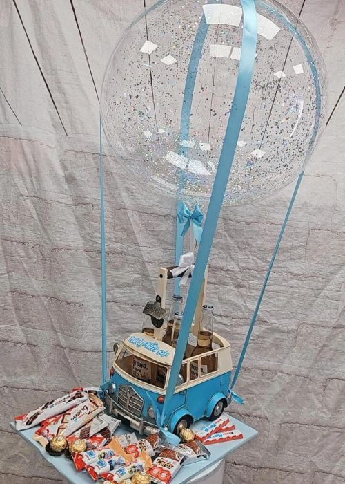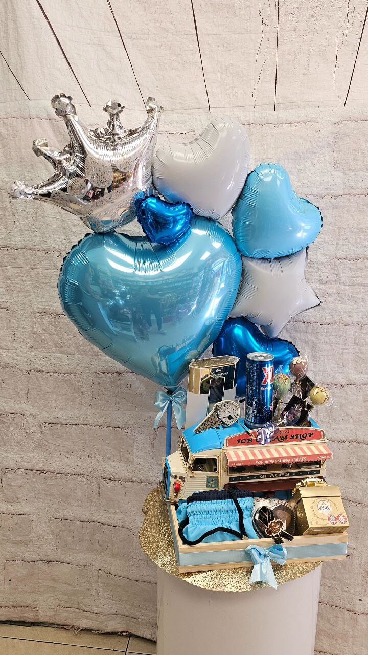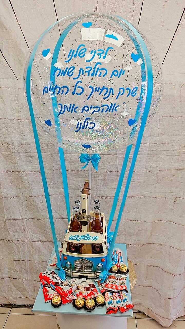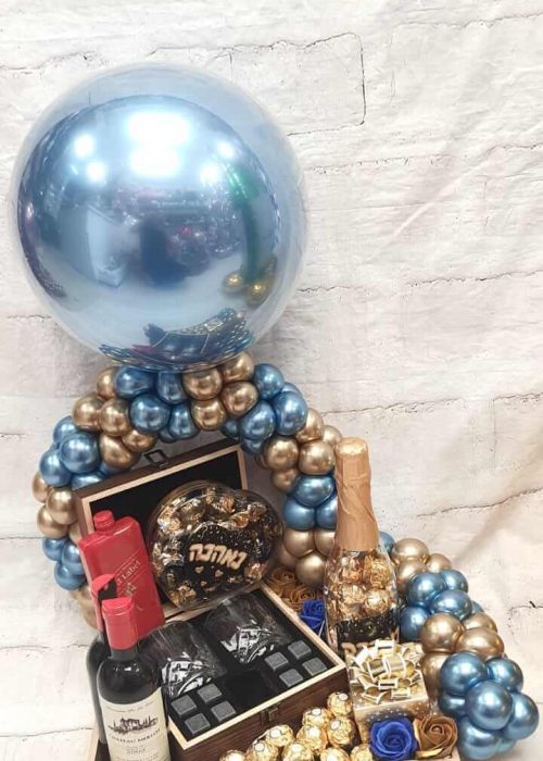 את המארז נקשט בשפע של בלונים מרהיבים בשלל צורות ועיצובים.