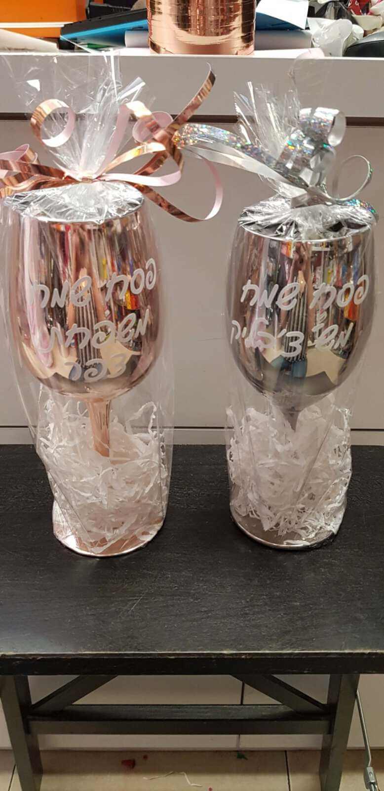 כוסות היין שלנו מגיעות במארזים יוקרתיים ומעוצבים וניתן לכלול בהן פרחים, קישוטים ובלונים עם הקדשות אישיות.