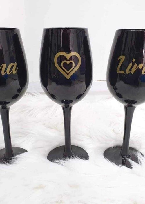 שפע של כוסות יין ממותגות ונוצצות בשלל צבעים מהפנטים. עיצוב אלגנטי ויוקרתי שיכול להתאים לשפע של אירועים החל ימי הולדת, דרך הצעות נישואין מהממות ועד למתנות רומנטיות או מסיבת רווקות.