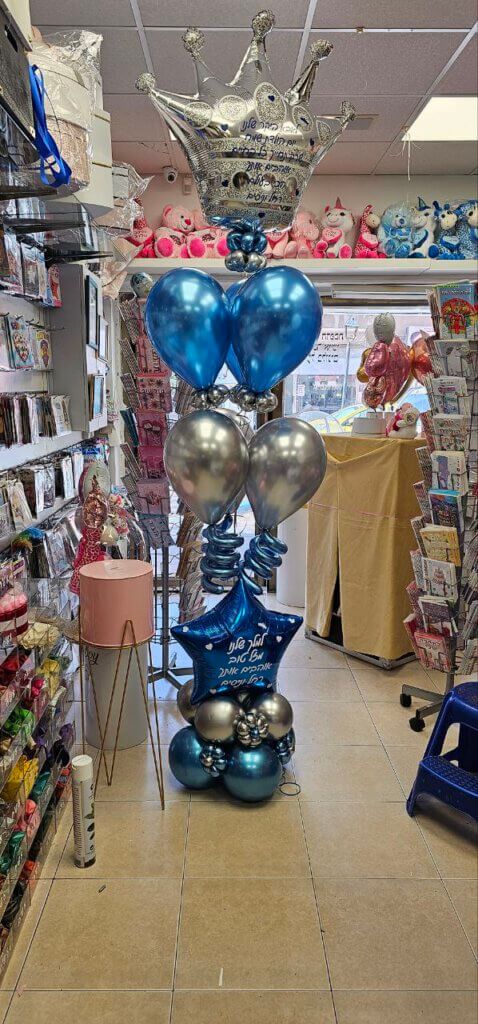 בלונים זה הכל » בלונים ליום הולדת » בלונים ליום הולדת לגבר » מעמד בלונים כוכב כחול וכסוף לגבר