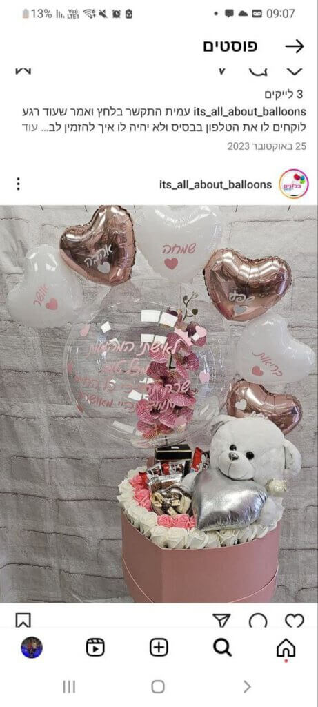 מגיע עם הדפסות אישיות על הלבבות ועל הבלון הגדול