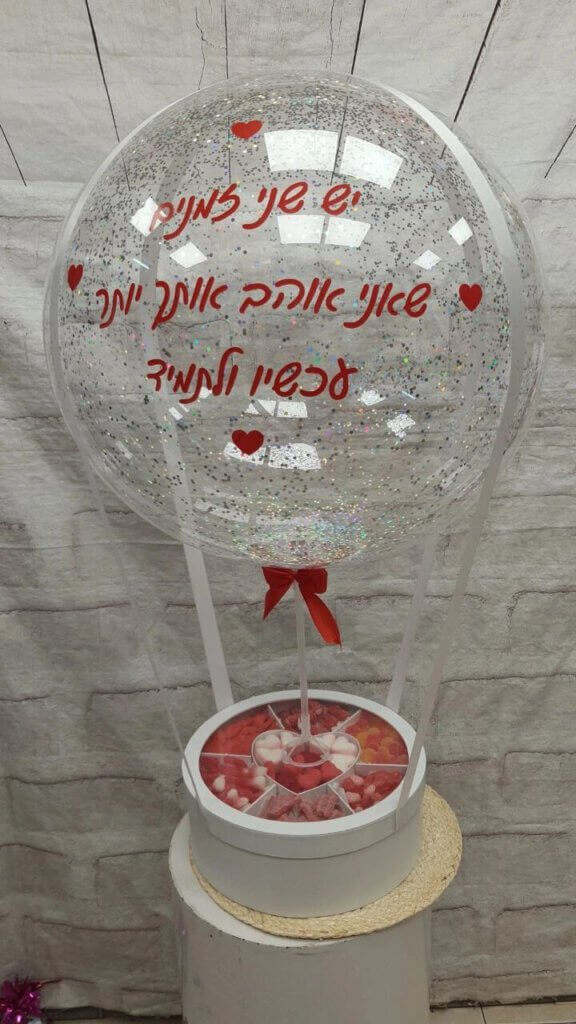 מארז כדור פורח שקוף וכיתוב אדום​
