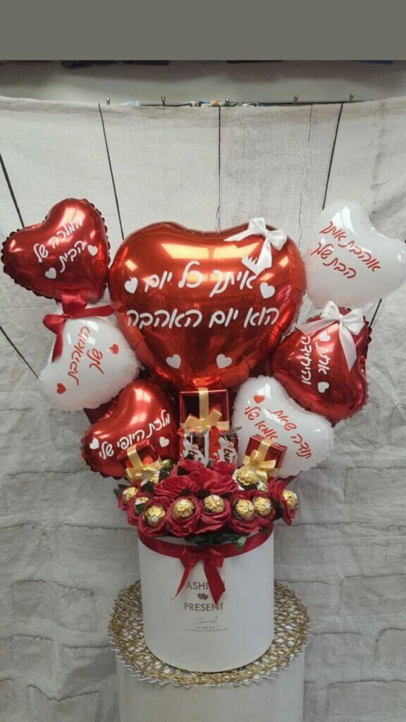 מגיע עם הדפסות אישיות על הלבבות ועל הבלון הגדול