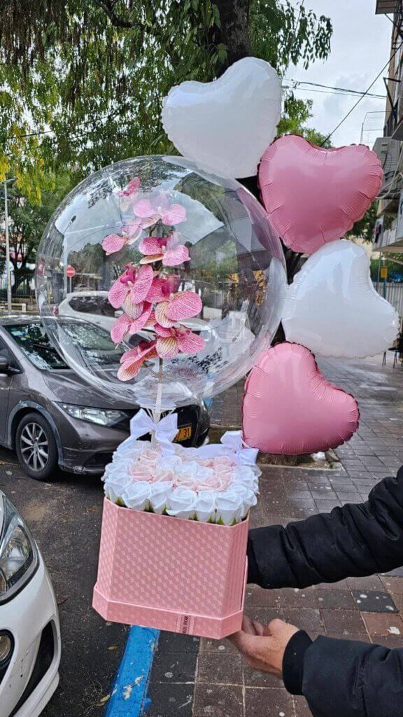 מגיע עם הדפסות אישיות על הלבבות ועל הבלון הגדול