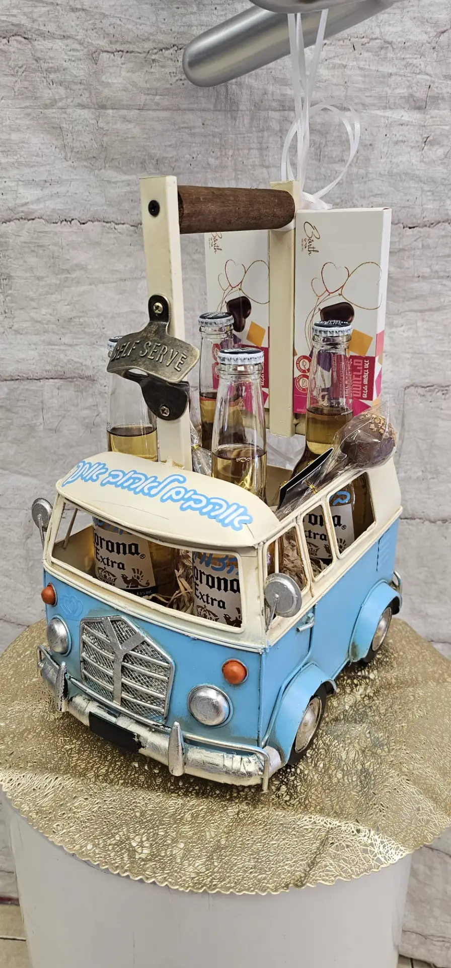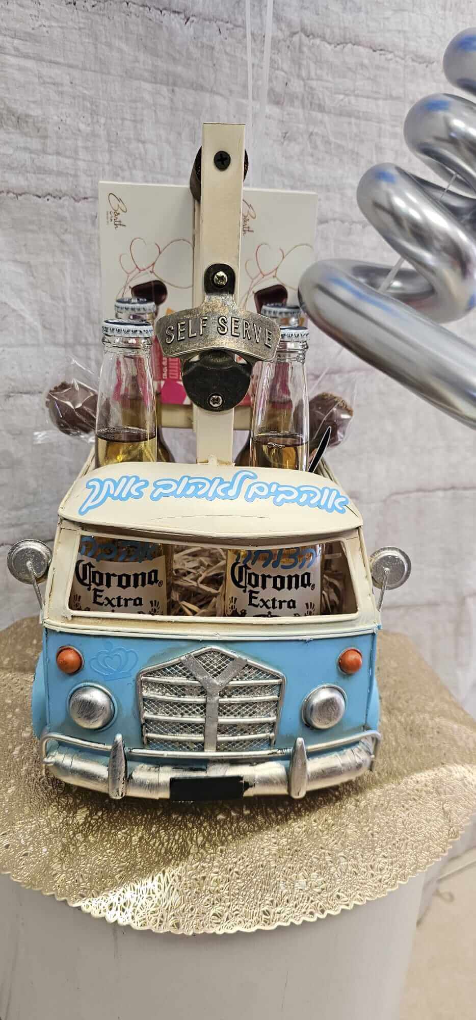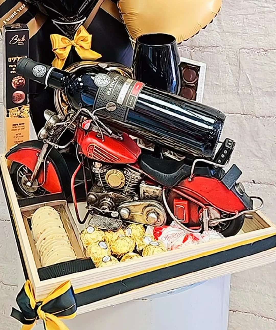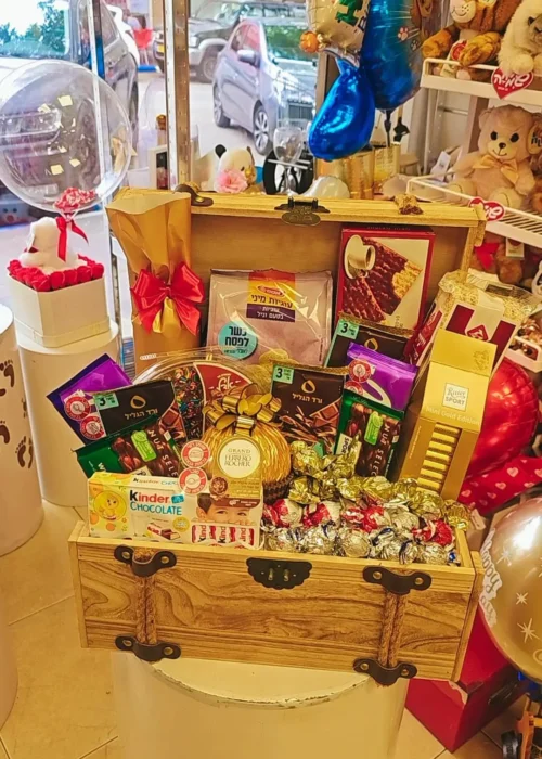 שימו לב!!! 🙂 יש לנו 2 גלריות: אחת עם מארזים מיוחדים ללא בלונים ובעיצובי וינטג' מדליקים, ומתחתיה גלריית מארזי מתנה לגבר עם בלונים
