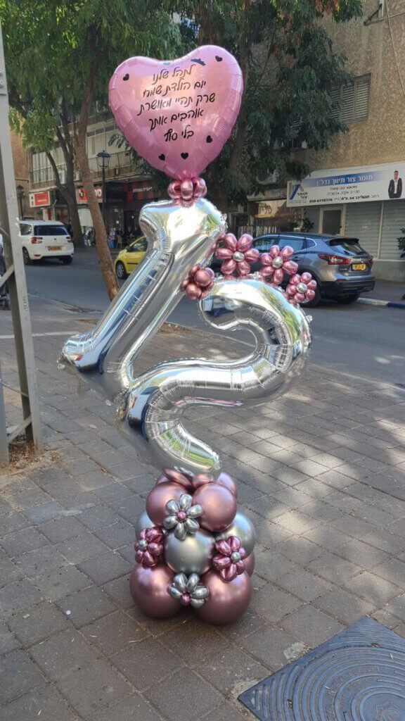בלונים זה הכל » בלונים לבת מצווה » מעמד בלונים 12 עם לב וקישוטי בלונים קטנים וגדולים