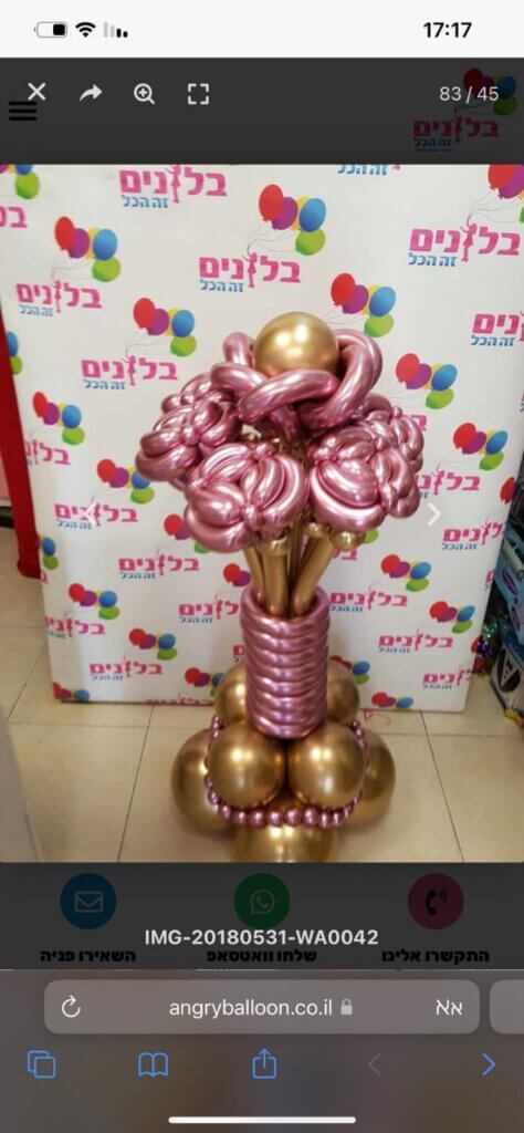 בלונים זה הכל » בלונים ליום הולדת » בלונים ליום הולדת לאישה » מעמד זר פרחים מבלונים לאישה
