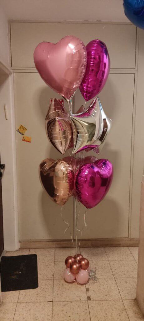 בלונים זה הכל » בלונים ליום הולדת » בלונים ליום הולדת לילדה » זר בלוני לבבות וכוכבים