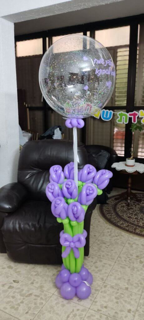 • פרחי בלונים סגולים עם גבעול בלון ירוק