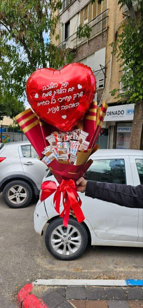 בלונים זה הכל » בלונים ליום האהבה » זר שוקולדים ובלון לב ענק